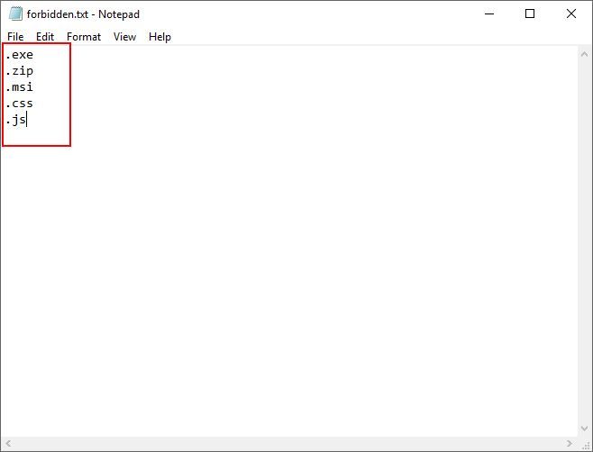 Before, following the steps below create a forbidden url text file with the required extensions in a list (Figure 2).