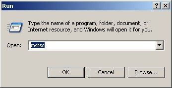 1) Click "Start", and then click "Run". In the popup "Run" dialogue box, type "mstsc", and then press the "Enter" key(Figure 1-4).